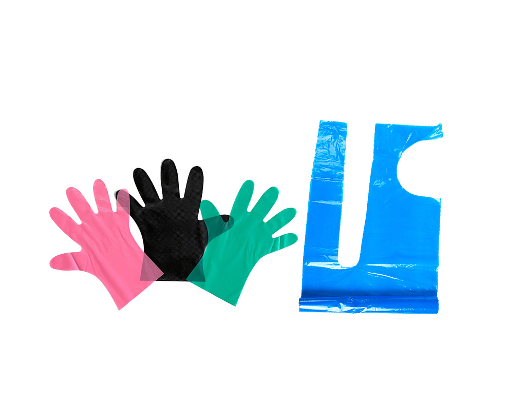 C:餐飲、家居用品:如PE圍裙、PE手套等。PE圍裙可根(gēn)據客戶要求製作HDPE、LDPE、CPE或(huò)TPE材料,單(dān)條圍裙或成卷(juàn)圍裙,印刷或不印刷等。